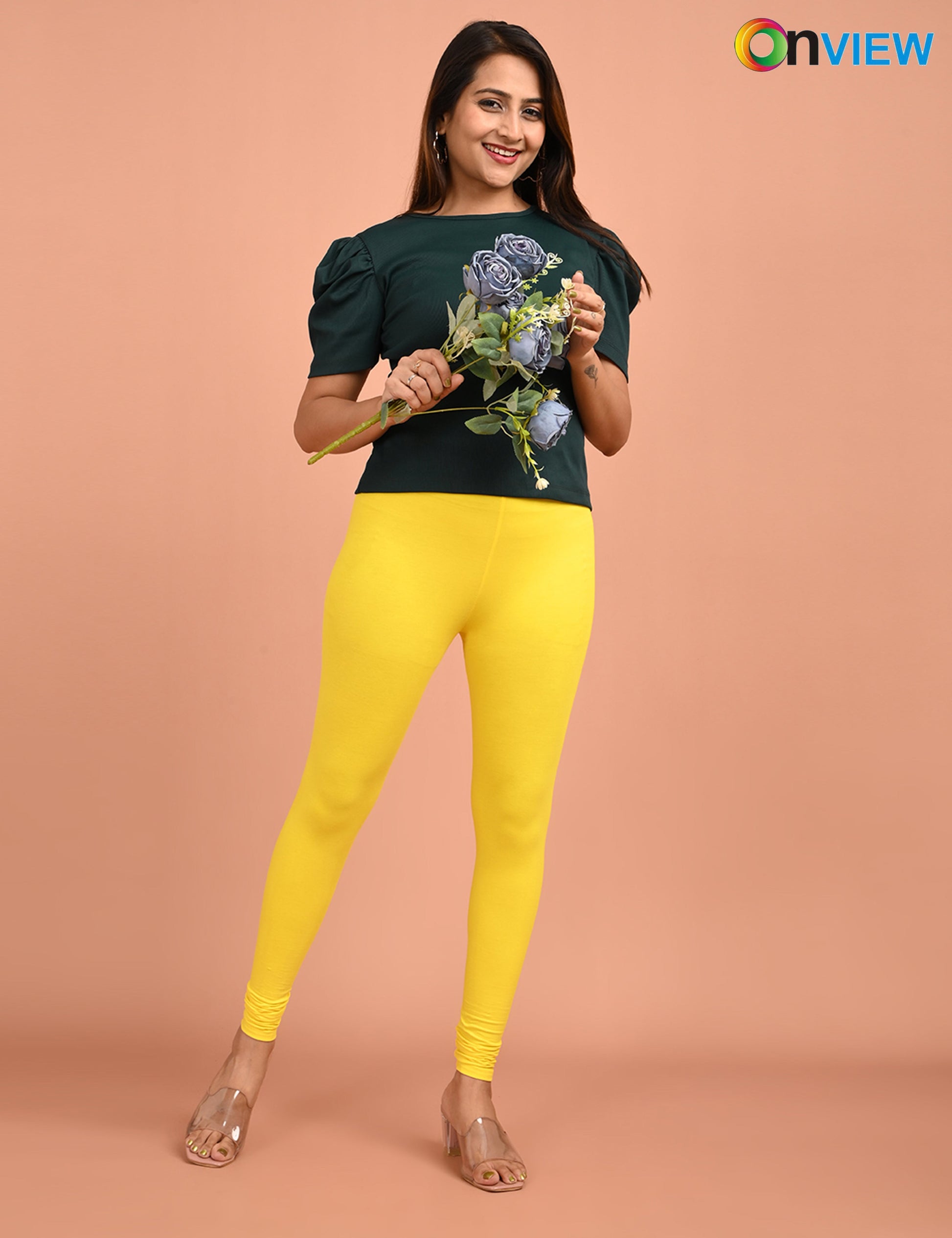 ONVIEW | 023 | Lemon Yellow Cotton Lycra Ankle Length Legging 220gsm
