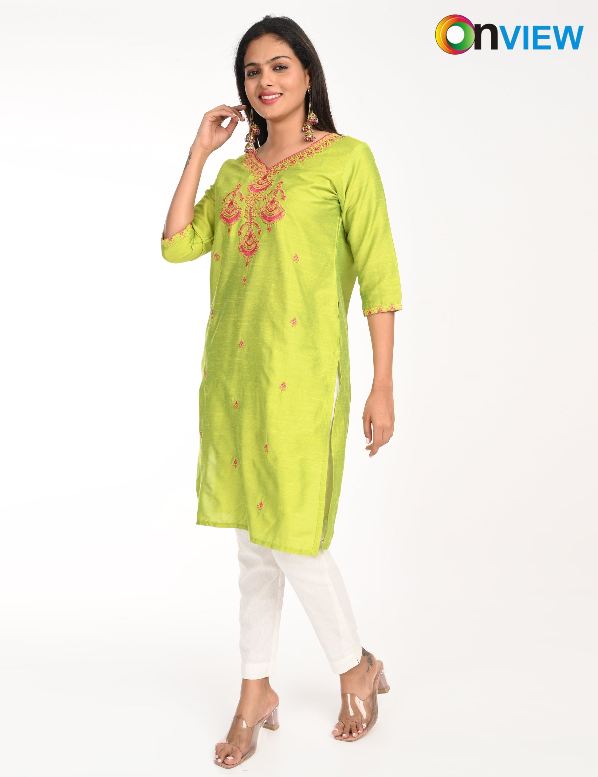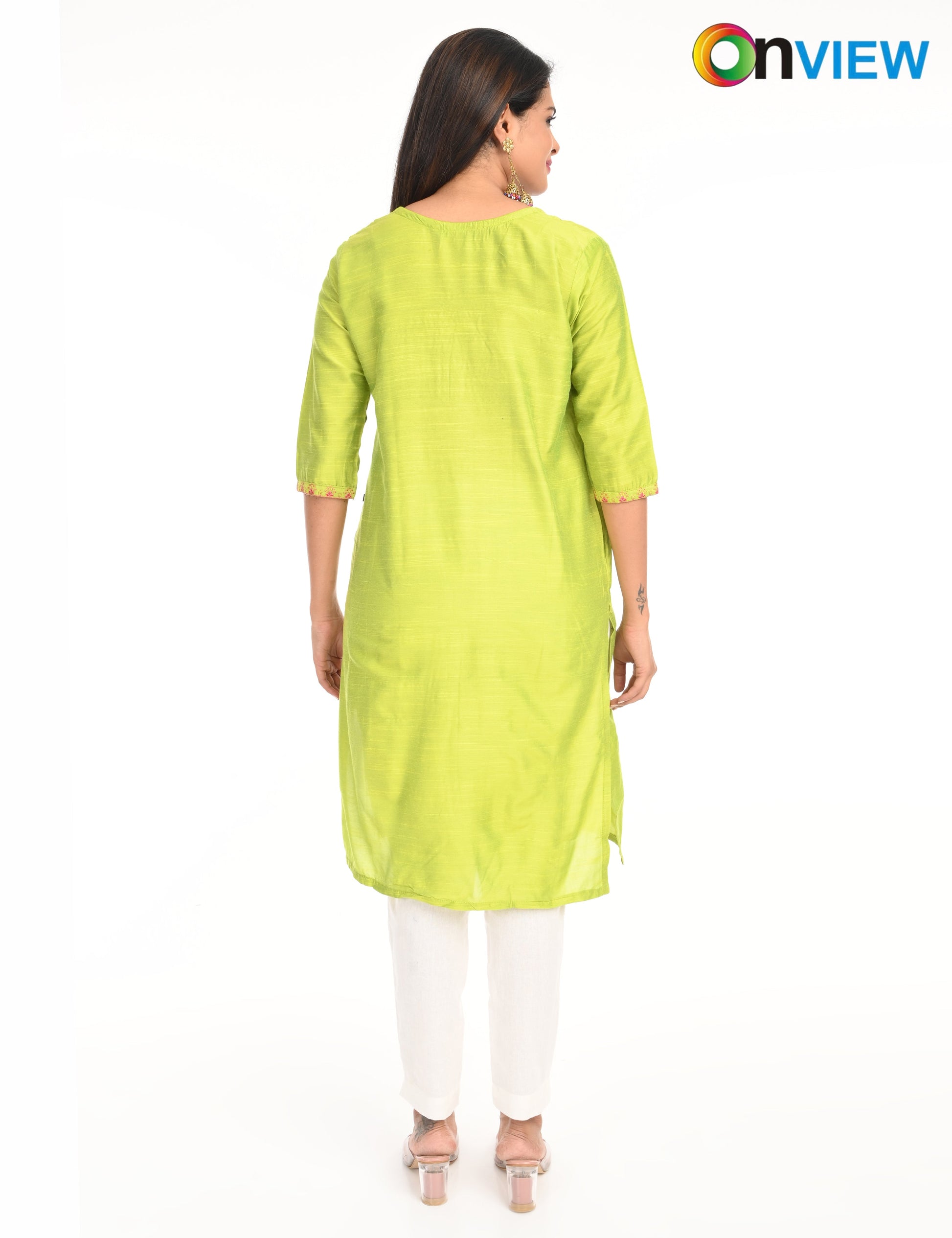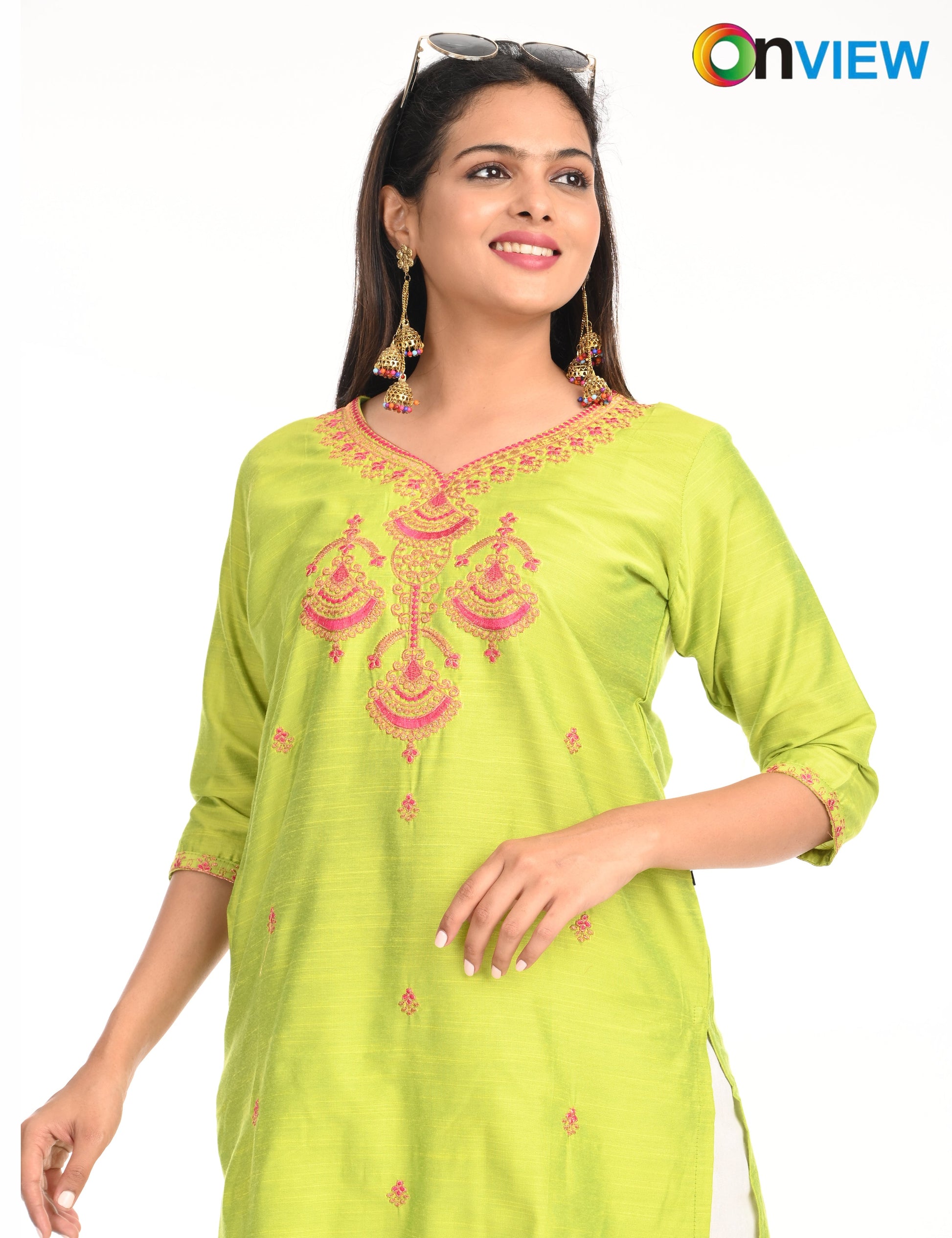 The ONVIEW SLUB BOUTIQUE WORK is a sophisticated blend of luxurious fabric and delicate craftsmanship, designed to elevate your style effortlessly. Made from premium-quality silk, this kurti boasts a rich texture and an elegant sheen that exudes opulence, making it a perfect choice for special occasions or everyday elegance.