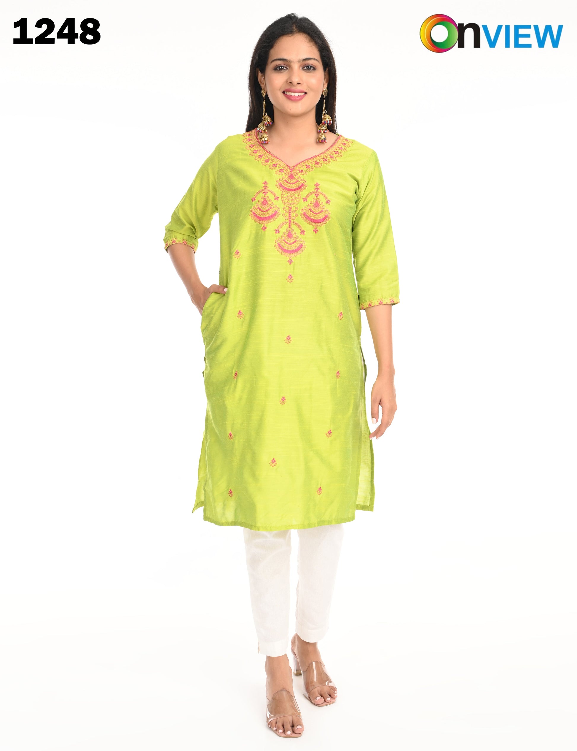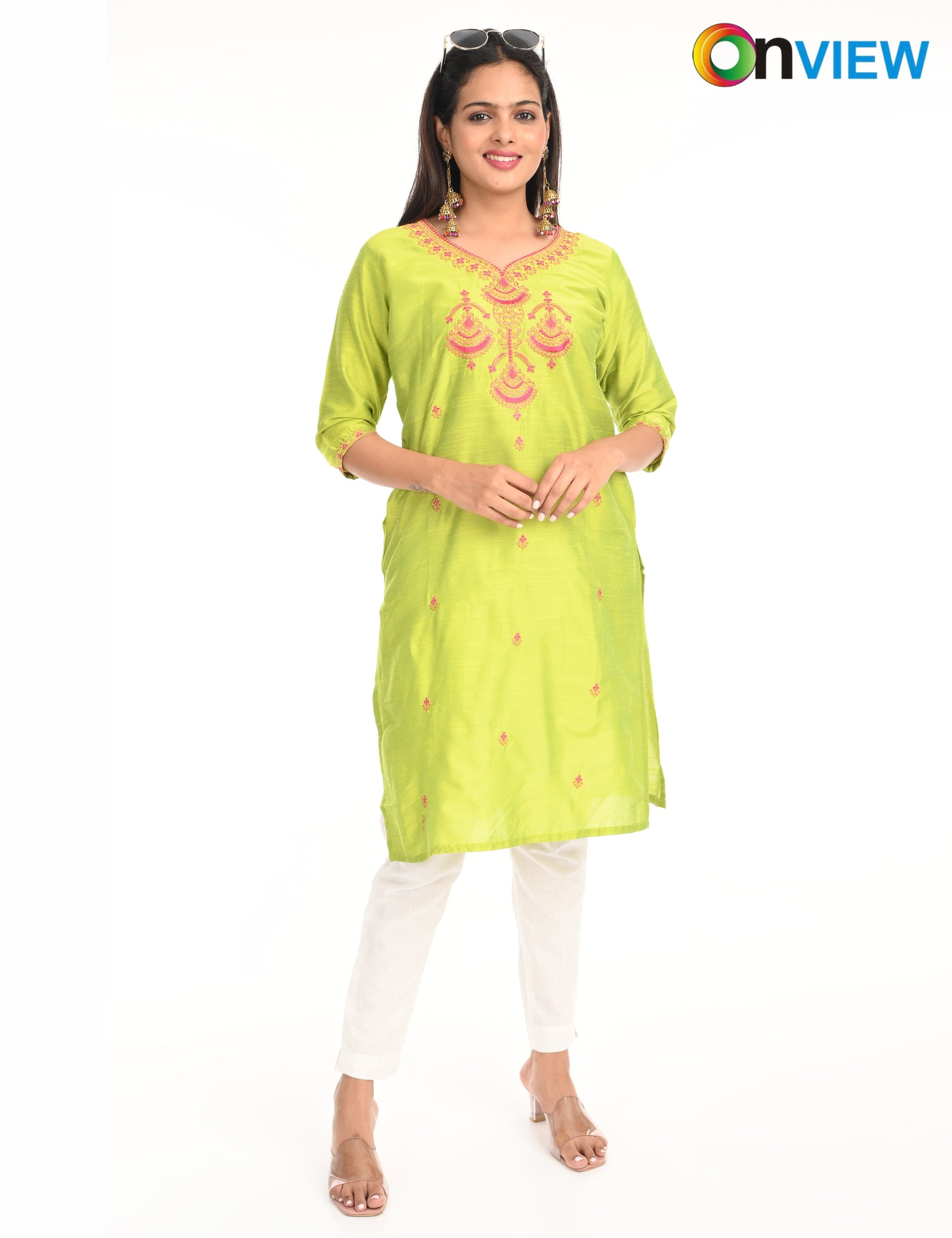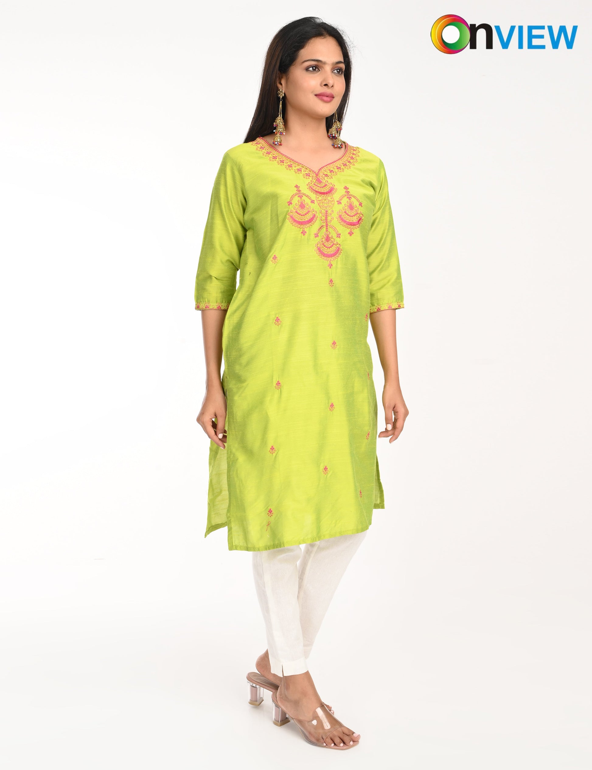 The ONVIEW SLUB BOUTIQUE WORK is a sophisticated blend of luxurious fabric and delicate craftsmanship, designed to elevate your style effortlessly. Made from premium-quality silk, this kurti boasts a rich texture and an elegant sheen that exudes opulence, making it a perfect choice for special occasions or everyday elegance.