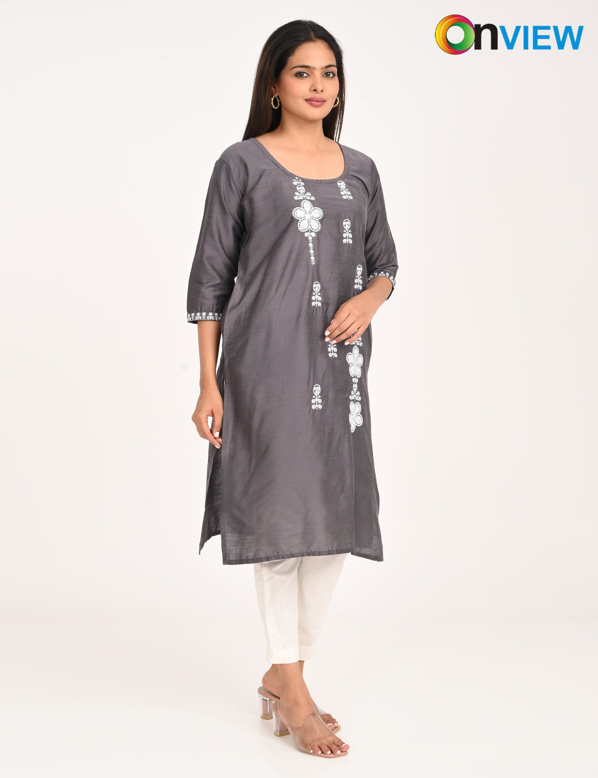 The ONVIEW SLUB BOUTIQUE WORK is a sophisticated blend of luxurious fabric and delicate craftsmanship, designed to elevate your style effortlessly. Made from premium-quality silk, this kurti boasts a rich texture and an elegant sheen that exudes opulence, making it a perfect choice for special occasions or everyday elegance.