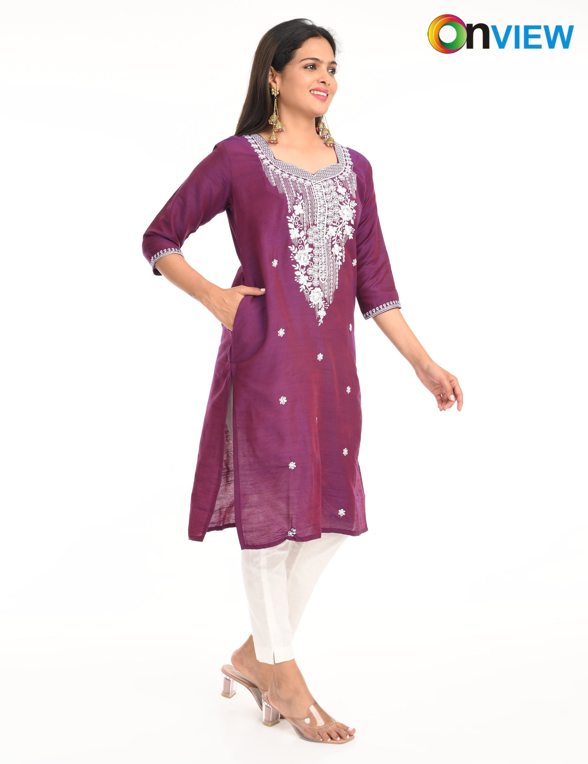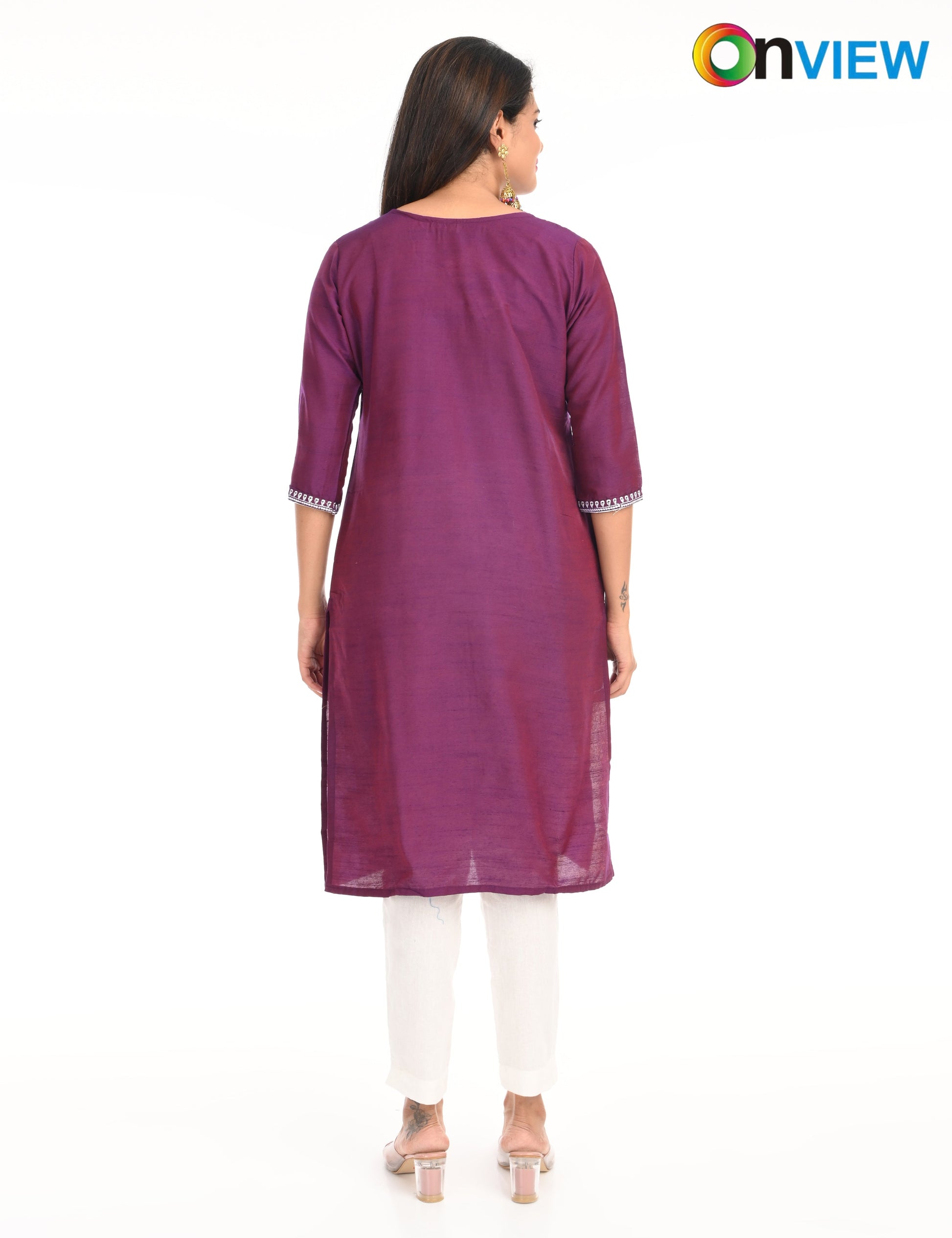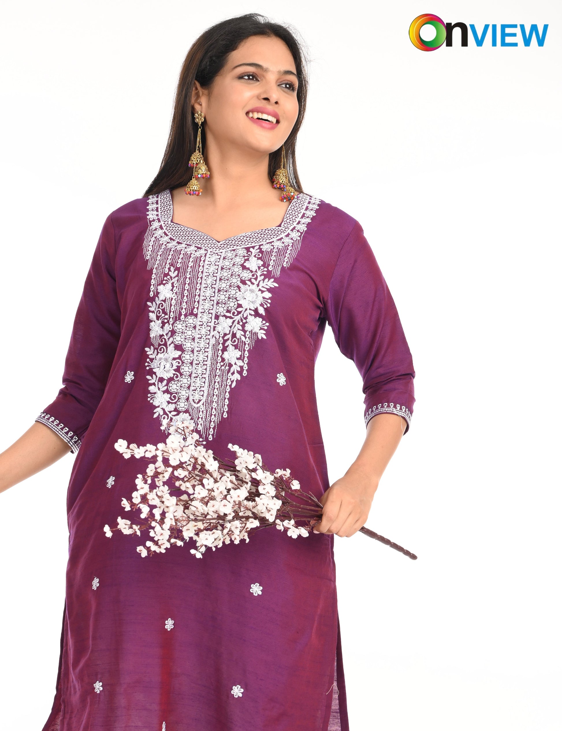 The ONVIEW SLUB BOUTIQUE WORK is a sophisticated blend of luxurious fabric and delicate craftsmanship, designed to elevate your style effortlessly. Made from premium-quality silk, this kurti boasts a rich texture and an elegant sheen that exudes opulence, making it a perfect choice for special occasions or everyday elegance.